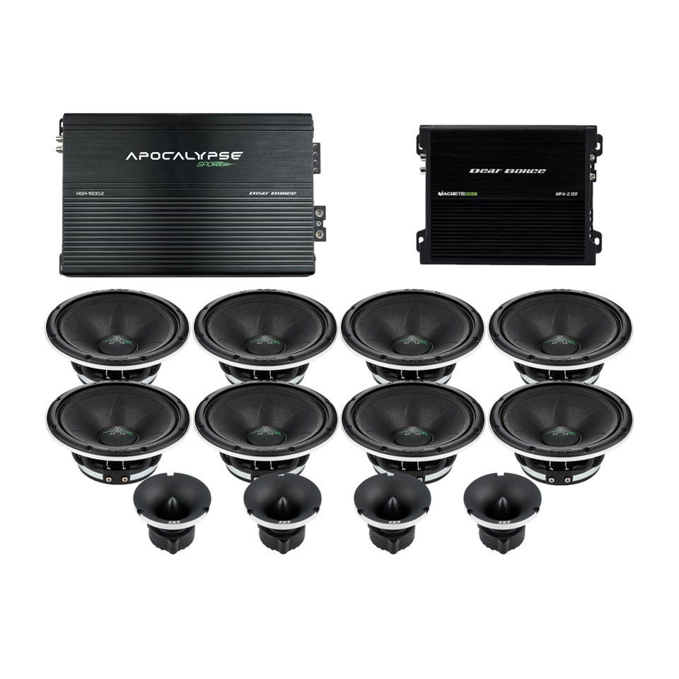 • Förstärkare för midbasarna: Apocalypse ASA-1500.2 – Ett extremt kraftfullt steg som ger maximal kontroll och effekt till dina midbasar.