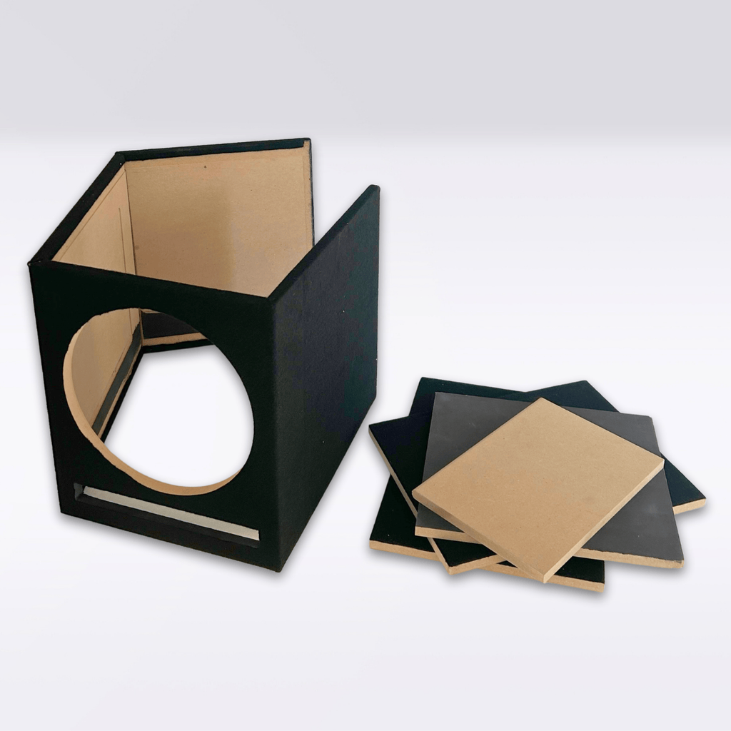 45-liter subwoofer box with reflex port | Kit Case to assemble for 12" subwoofer.45-liter reflex box in kit to assemble, designed for 12" subwoofers. We recommend installation with our 12" IRON series subwoofer for optimal performance.The box is made of high-quality MDF, a composite material made from wood fibers pressed at high temperature with resin, which provides rigidity, insulation and no unwanted vibration. The product comes in panels to be glued and assembled-it is the perfect choice for those who want a customizable, solid box designed to provide deep and powerful sound output.The box features:28 cm front hole (compatible with most 12" subwoofers).Built-in reflex port, tuned to maximize efficiency at low frequenciesTerminal block and connection cable included in package for immediate and neat installationCharcoal gray carpetcovering This speaker is the ideal solution for those seeking balanced, ready-to-use internal volume, perfect for both daily systems and moderate SPL use. Key features:Internal volume: 45 litersSubwoofer hole: 28 cm diameterSturdy MDF constructionPre-cut panels for assemblyTerminal and cable included