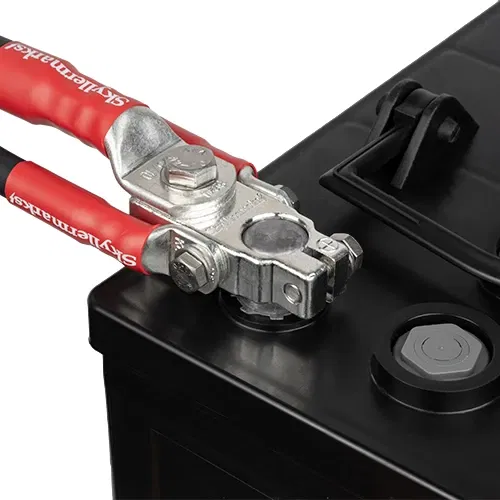 För att skapa en säker, stabil och lågförlustanslutning till batteripolerna har Skyllermarks utvecklat denna genomtänkta polplint som kombinerar kopplingsplint och polsko i ett. Konstruktionen gör det möjligt att ansluta flera grova kablar utan att de hamnar ovanpå varandra, vilket ger optimal kontakt och minimerar risken för spänningsfall.