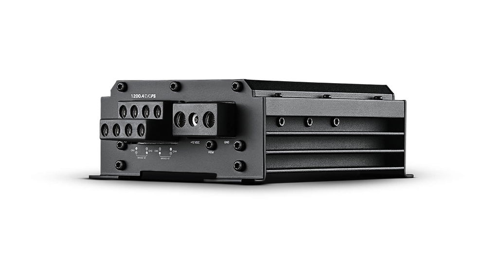 For use in Power Sports projects, the 1200.4 EVOPS is a compact, modern design amplifier that delivers 1200W RSM of power distributed over 4 channels.