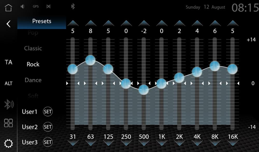 - 10-bands grafisk equalizer med 7 fördefinierade och 3 användartilldelbara EQ-förinställningar
