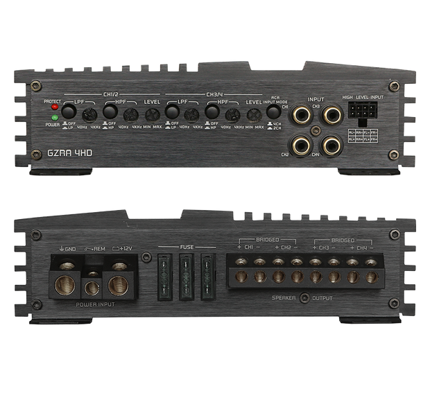 Ground Zero GZRA 4HD amplifier of RADIOACTIVE line offer amazing high output power packed in a stylish titanium-colored heat sink, which offers a variety of suitable features for perfect audio customization. However, in a modern car environment, the installation space for an audio system could also be quite limited. For this reason, the RADIOACTIVE line also includes the smallest amplifiers GROUND ZERO has ever offered. The GZRA MICRO series amplifiers allow for an uncomplicated and space-saving installation and provide all the necessary filters for almost any sound concept imaginable.