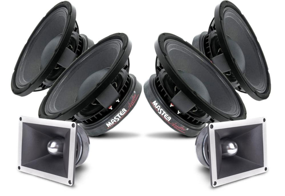 Paketpris på 4 st Master Audio 10" midbasar och 2st diskanter  för den som vill spela på rejält till ett hyfsat lågt pris.