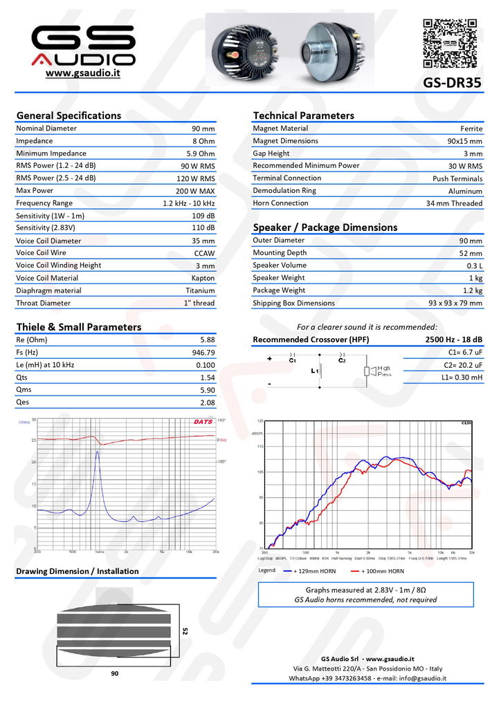 GS Audio DR35 - Driver 1.2-10kHz, 8 Ohm,